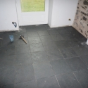 Descriptif : 1-2/ Pose d'un carrelage imitation parquet, 3-5/ Pose d'un sol en ardoise, 6-8/ Pose de barettes de granit pour un sol de douche.